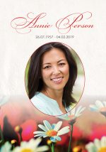 Two sided memorial cards printed on high quality 420gsm silk card. The reverse can be used for a verse, poem or thank you from the family.
