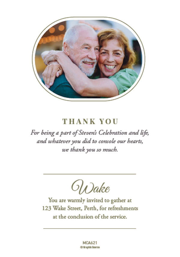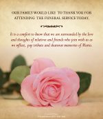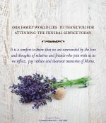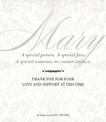 Two sided memorial cards printed on high quality 420gsm silk card. The reverse can be used for a verse, poem or thank you from the family.