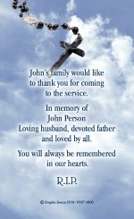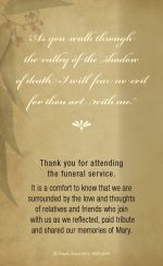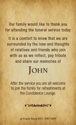 Two sided memorial cards printed on high quality 420gsm silk card. The reverse can be used for a verse, poem or thank you from the family.